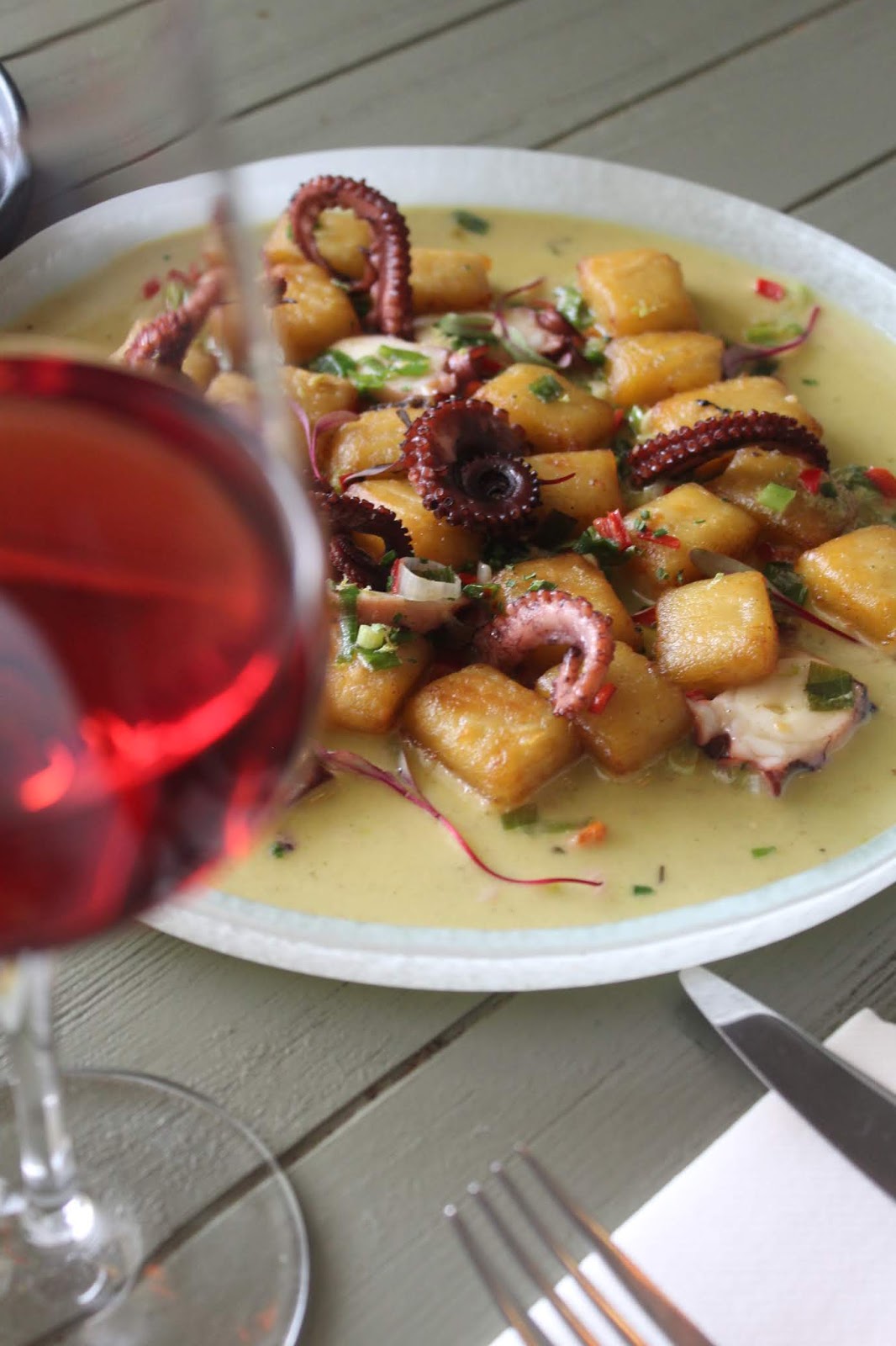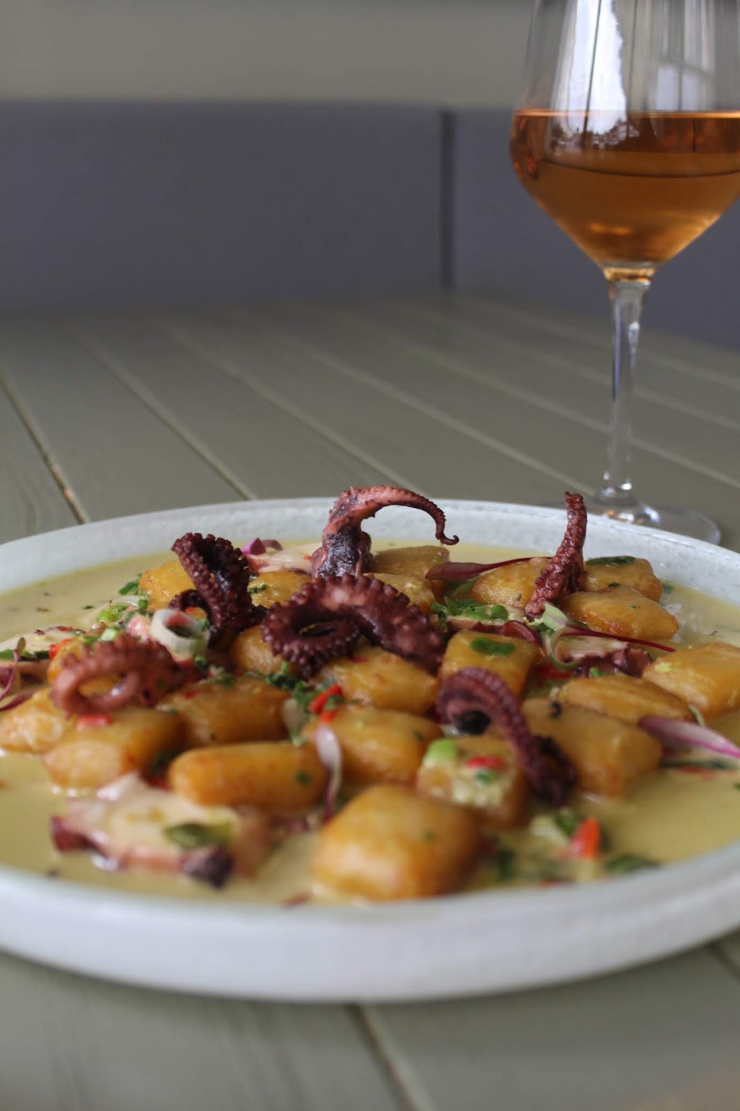 Ένα από τα νέα πιάτα που μας ενθουσίασαν είναι τα νιόκι φάβας με χταπόδι! Καλομαγειρεμένα με πλούσια γεύση και βελούδινη υφή, θεωρούμε ότι δεν πρέπει να λείπουν από καμία παραγγελία! Το χταπόδι που τα συνόδευε, τρυφερό και σε πλήρη γευστική ισορροπία με τα νιόκι!