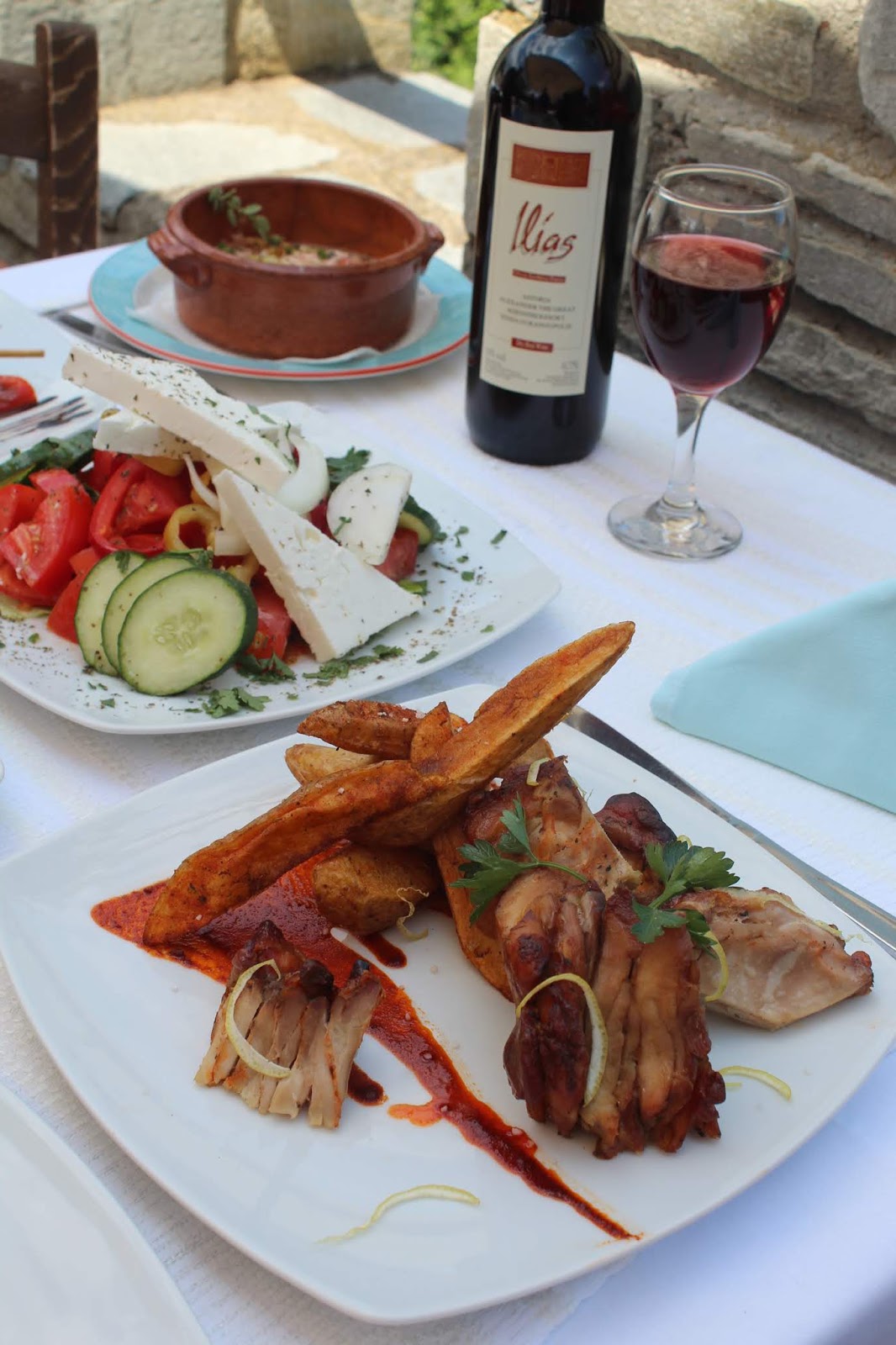 Συνοδεία όλων των εδεσμάτων το εξαιρετικό κρασί Ilias που διατίθεται αποκλειστικά από τα PAP HOTELS